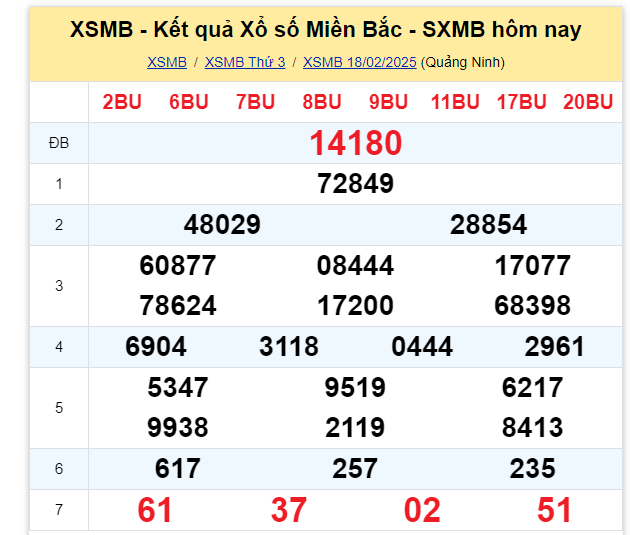 Chốt lô An Giang đặc biệt ngày hôm nay 18/2/2025 như sau: